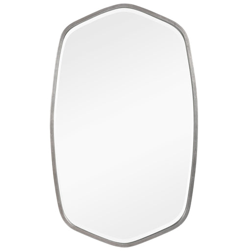 This Hand Forged Iron Mirror Frame Features A Unique Shape With Elegant Curves, Finished In A Streamlined Satin. Mirror Has A Generous 1 1/4" Bevel...