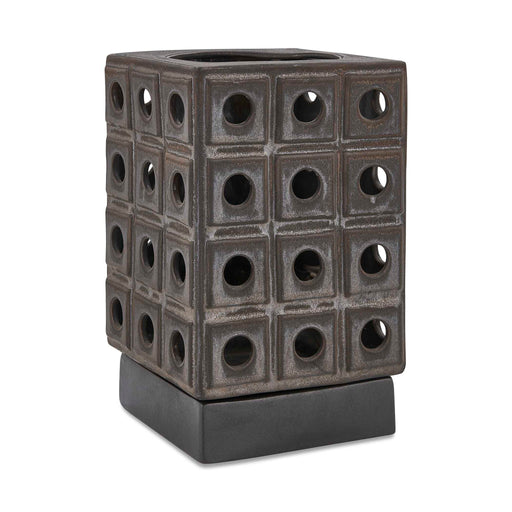 This Sculptural Earthenware Candle Holder Features A Unique Design With A Modern, Architectural Design, Finished With A Distressed Brown Glaze, Rev...