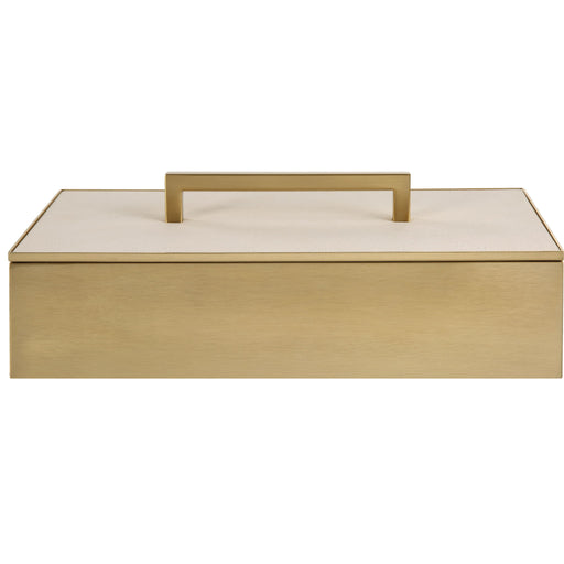 A Classic Silhouette With Modern Touches, This Metal Box Is Finished In A Classic Brass And Covered With A Lift-off Lid Finished In An Elegant Faux...