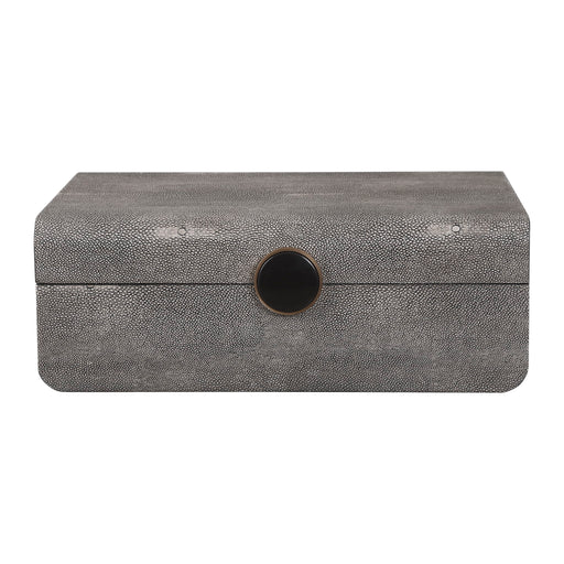 Inspired By The Art Deco Era, This Decorative Box Showcases A Faux Shagreen Wrapped Exterior Accented By A Brushed Antique Brass And Enamel Closure...