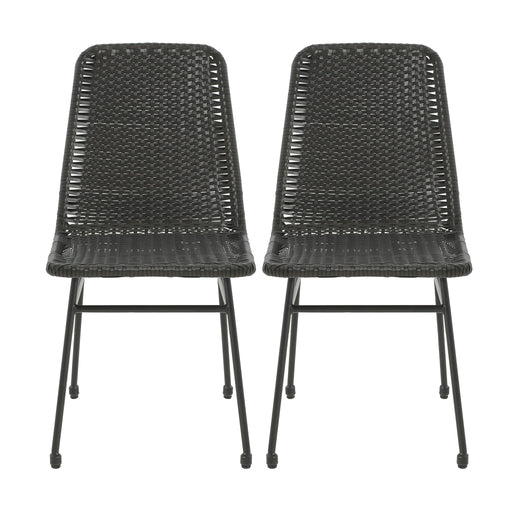 Outdoor Dining Chairs (Set of 2), Rattan Backrest And Cushions, Iron Frame - Dark Brown