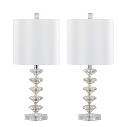 Elegant Design: The Diamond Stacked Table Lamp features a stunning arrangement of five diamond-styled crystals, separated by polished chrome ...