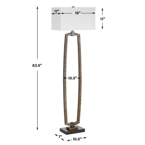 Infusing Your Space With Rustic Charm And A Hint Of Sophistication, The Keros Floor Lamp Features A Dark Oak Wood Base Paired With Brass Plated Det...