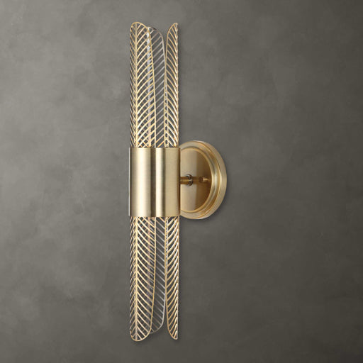Two Handmade Glass Panels Of Etched Translucent Seeded Glass Complete Each Shade Of This Opulent Sconce With An Antique Brass Finish. 2-60 Watt Max...