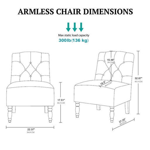 Timeless Design: Classic button-tufting and armless silhouette for vintage appeal. Elegant Legs: Hand-carved turned birch legs with a sophisticate...