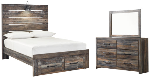 This full-size panel bed with storage, dresser and mirror is a refined take on barn board beauty. Its complex, replicated wood grain showcases hint...