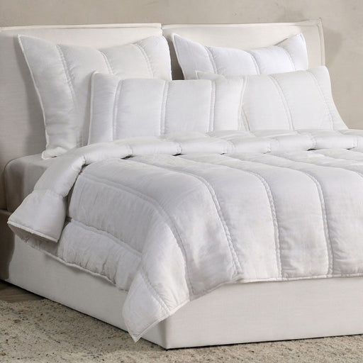Quilted by hand with a large, channel-stitched design, this collection brings a crisp, airy feeling to any space. Ramie, a sustainable material, em...