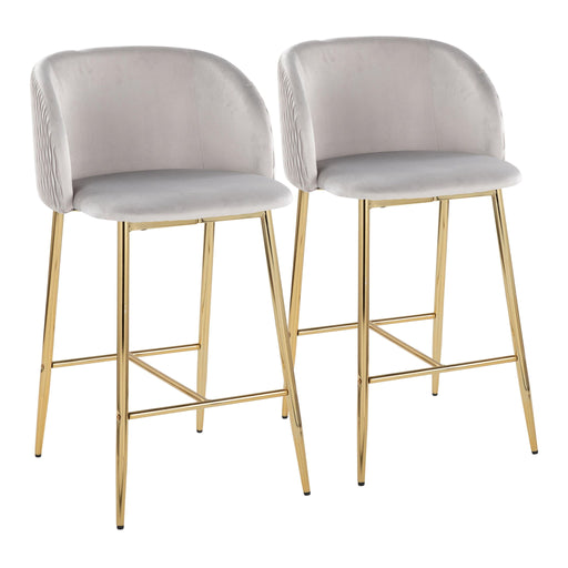 Elegant Design: The Fran Pleated Waves Counter Stool by LumiSource features a sophisticated velvet upholstery with a pleated wave pattern, perfec...