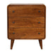 • Artisan Furniture Solid Wood Mini Chest - To match the other products from the curved collection, this mini chest of drawers has been constructed from 100% solid mango wood in a rich finish and stands on 4 Nordic style legs. It features shiny accent knobs on each drawer providing easy access when storing any clothes, towels, duvets, etc. The curved design provides smooth, safe corners and gives the product a modern and contemporary look which is perfect for city homes and apartments. This product is part of the Recession Collection.