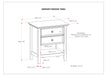 - Features two (2) spacious drawers with metal drawer glides and open bottom storage area