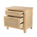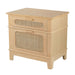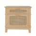- Bohemian Flair: Features a light pine wood veneer and caning inset on the drawers, providing a bohemian feel with a mid-century twist.
