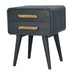 - Artisan Furniture Solid Wood Midnight Teal Bedside Table 2 drawer - Meet the Midnight Teal Bedside Table and transform your space with the perfect blend of style and functionality. Crafted from 100% solid mango wood, its bold teal finish and curved design make it an instant showstopper in any bedroom. It features 2 spacious drawers with elegant brass handles on each drawer, and nordic-style legs