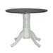 Feel at home with the Brook Bay drop leaf table set. Crafted with excellence using rubberwood solids and mindy veneers, this table features a two-tone Carbon Gray and Textured White finish. There are two 8” drop down leaves on the top, allowing the user to save space when needed. The pedestal base is heavy turned and is supported by shaped splayed feet. Feel comfortable and elegant at the same time with the Brook Bay drop leaf table set.