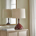 Crafted With Meticulous Attention To Detail And A Classic Silhouette, This Ceramic Table Lamp Boasts A Rich Burgundy Glaze Accented With Brass Plated Detailing. The Slightly Tapered Round Hardback Shade Is Covered In A Casual White Linen Fabric.