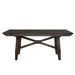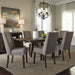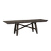 Gather the family around the Double Bridge optional table set, consisting of a trestle table and four upholstered side chairs. Crafted of rubberwood solids and acacia veneers, this kit features a dark chestnut finish with wire brushing. The table offers two 12-inch leaves, one for each end of the table, to accommodate guests or a larger family, and an easy glide track system for added convenience. The chairs feature grey linen upholstery and nylon chair glides to protect your flooring. The Double Bridge Dining defines the rustic side of casual. The sleek design is optimal for any space.
