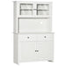 Homcom - 63.5" Kitchen Buffet With Hutch, Pantry Storage Cabinet With 4 Shelves, Drawers, Framed Glass Doors, Open Microwave Countertop - Antique White