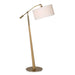 The Kennett Floor Lamp's Blend Of Modern And Classic Materials Makes It A Versatile Choice For Any Space. It Features A Tapered Wooden Base Balanced On A Plated Antique Brass Foot, Complemented By A Matching Adjustable Shade Arm. The Round Hardback Drum Shade Is A Casual White Linen Fabric.