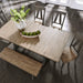 Wow family and friends with the Lindsey Farm trestle table set. Crafted of rubberwood solids and veneers.