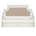 Accent your bedroom with the perfect blend of European Traditional design, using this unique twin daybed. Upholstered in tufted chenille, laced with tones, threading, this bed constructed with poplar solids as well as oak & birch veneers, features an antiqued finish accompanied by heavy chipping. This piece ships with a slat roll pack, preventing buyers from having to purchase a box spring, enhancing user convenience. Enjoy the extra storage or utilize the trundle to accommodate guests. The scrolled cap rail and sloped end panels on each side effortlessly add both definition and character, completing your look.