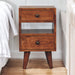 - Mini Classic Multi Nightstand - Obtain an effortless look with our Mini Classic Bedside. It is constructed from 100% solid mango wood and the sleek design is complemented by shiny brass knobs and nordic style legs as well as 2 drawers and an open slot. The perfect piece to use alone or pair with different styles and finishes of furniture. This petite product is part of Recession Collection.