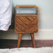 - Mini Lille Curved Nightstand - Add this unique solid wood Mini Lille Curved Bedside to your bedroom, constructed from 100% solid mango wood in an oak-ish finish, this piece features a unique line hand-carved design on the drawer fronts as well as an open space for convenience and 4 Nordic style legs which compliment the body nicely and give the entire piece a contemporary look. The perfect addition to the home.