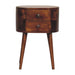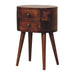 - Mini Chestnut Rounded Nightstand Table - This mini solid wood bedside has been constructed from 100% solid mango wood in a chestnut finish and offers a unique shaped design with rounded edges. It features 2 mini drawers which come with a shiny knob and Nordic-style legs. A great, simple addition to the bedroom.
