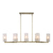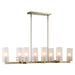Two Handmade Glass Panels Of Etched Translucent Seeded Glass Complete Each Shade Of This Opulent Eight Light Linear Chandelier. The Robust Rectangular Bar Frame Is Suspended By Two Adjustable-length Stems All In An Antique Brass Finish. 8-60 Watt Max Candelabra Sockets. Bulbs Not Included. Supplied With 20' Wire, 6-12" Stems And 2-6" Stem For Adjustable Installation.