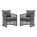 Modern Curved Aluminum Lounge Chair With Rope Weave Design And Cushioned Comfort (Set of 2) - Gray