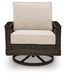 | Details | Resin wicker brings all-weather durability to a traditional woven wicker look, Sturdy aluminum frame, Stainless steel hardware resists rust and boosts longevity, Hand-brushed, wood-look finish, Solution-dyed high-performance fabric, Nuvella is an outdoor fabric that can be cleaned and offers enhanced UV resistance, Foam cushion core wrapped in soft polyester for a low-maintenance, comfortable cushion, Clean fabric with mild soap and water, let air dry; for stubborn stains, use a solution of 4 oz. bleach to 28 oz. water, Designed to withstand the harsh elements of the outdoors, 360-degree swivel, Assembly required | |