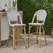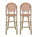Outdoor Rattan French Barstool With Bamboo Aluminum Frame, Seat Height (Set of 2) - White / Black
