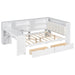 Full Size Platform Bed With Storage Shelves, Drawers, Charging Station, LED, Desk And Upholstered Headboard - Beige / White