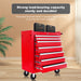 Red 7 Drawer Metal Rolling Tool Chest With Locking System And Wheels, Steel Construction - Red