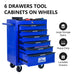 Rolling Metal Tool Chest With 6 Drawers, 20" Steel Storage Cabinet With Ball Bearing Slides - Black / Blue
