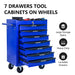 Rolling Metal Tool Chest With 7 Drawers, 20" Steel Storage Cabinet With Ball Bearing Slides - Black / Blue