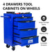 Rolling Metal Tool Chest With 4 Drawers, 20" Steel Storage Cabinet With Ball Bearing Slides - Black / Blue