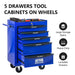 Rolling Metal Tool Chest With 5 Drawers, 20" Steel Storage Cabinet With Ball Bearing Slides - Black / Blue