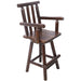 Rustic Bar Stool Fir Wood Construction, Chair With Footrest, Wide Armrest, Rustic Kitchen Stool, Tall Bistro Chair For Dining Room, Restaurant, Pub, 4 Foot - Brown