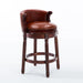 Seat Height 26'' Cow Top Leather Wooden Bar Stool, 360 Degree Swivel Bar Height Chair With Backs For Home Kitchen Counter - Brown