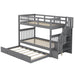 Twin Over Twin Stairway Bunk Bed With Twin Size Trundle For Bedroom - Gray