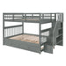 Twin Over Twin Bunk Stairway Bed With Three Drawers For Bedroom - Gray