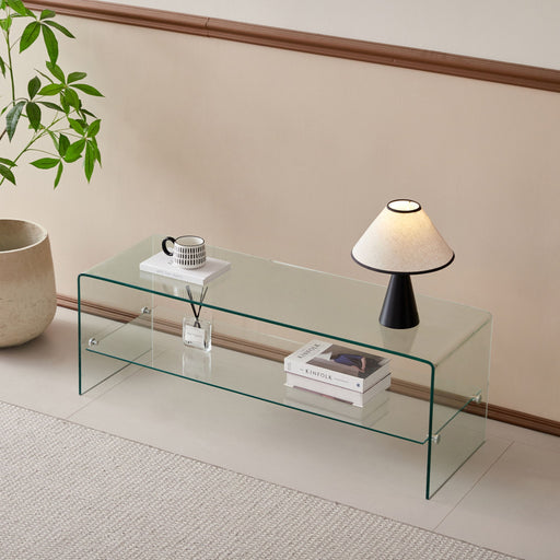 Modern Design: Elevate your living space with this sleek and stylish tempered glass TV stand. Multi-Functional: Equipped with a built-in shelf to ...