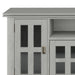 - Features a large centrally located open area with one (1) flip down drawer, one (1) pull out drawer as well as four (4) storage spaces with tempered glass doors.