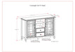 - Features two (2) drawers, an open center compartment with one (1) fixed shelf and one (1) adjustable shelf, and two (2) cabinets with tempered-glass doors and large interior storage areas with two (2) adjustable shelves each.