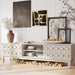 - Unique Media Console Design: Three-dimensional surface with open shelves and drawers enhances visual appeal and provides functional storage for living rooms and offices.