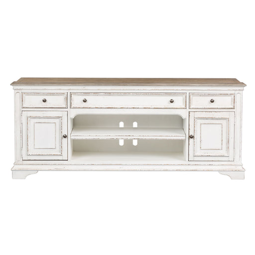 Indulge in a classic look and casual feel with the Allyson Park TV console. Crafted with pine solids and veneers with cathedral white oak veneer to...