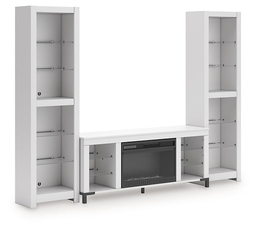 Express your modern farmhouse style with this entertainment center with fireplace. Its wispy white finish over replicated oak grain is a delightful...
