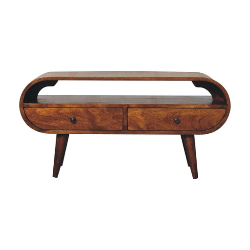 Artisan Furniture Solid Wood Curved Chestnut Double Slot Media Unit - Our solid timber media unit is expertly constructed from 100% solid mango wo...