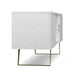 - Features two (2) Doors with discreet hand pulls, open central area with adjustable shelving and solid metal angled legs in a gold finish for reliable support