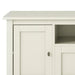 - Features central open area with one (1) drawer, one (1) compartment with flip down door, two (2) framed doors with enclosed spaces & two (2) large side storage cabinets open to one (1) adjustable shelf each