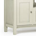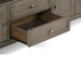 - Transitional design includes shaker style doors, brushed bronze knobs, square tapered legs and square edged table top